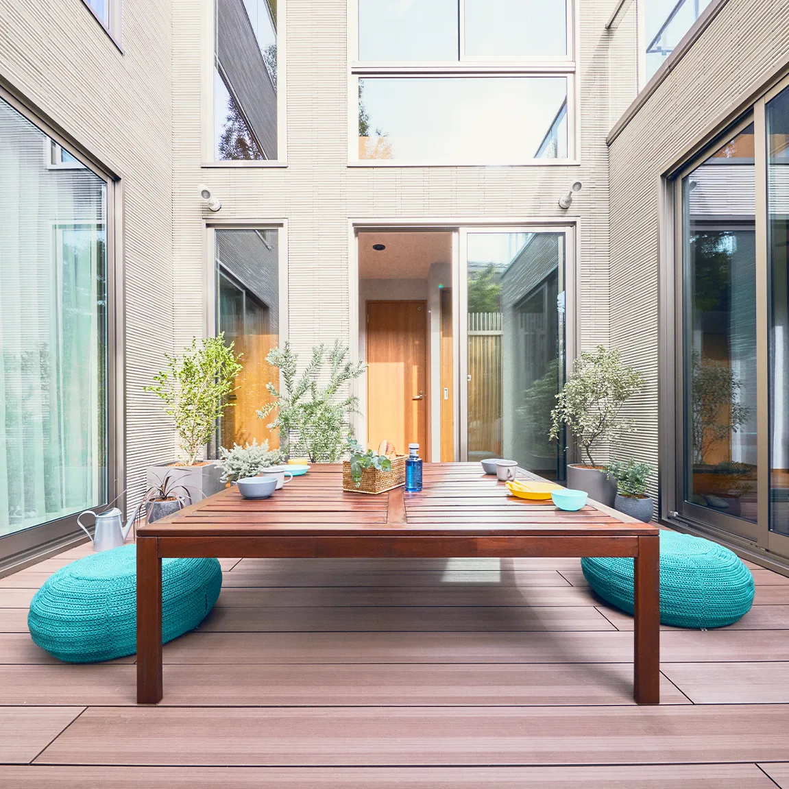 中庭の3要素を建物の内側に取り込むことでスペースを有効活用。
