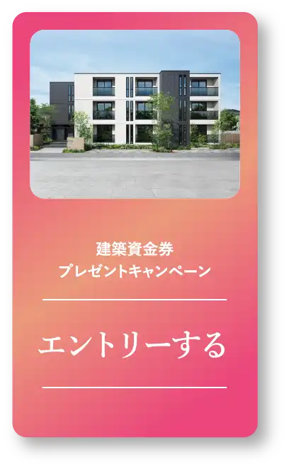●1等および2等の建築資金券については次の条件をすべて満たした住宅が対象となります。 ①GX志向型住宅②全館空調「スマート・エアーズPLUS」または「スマート・エアーズ」③総タイル仕様 (賃貸住宅の場合は①またはZEH-MまたはNealyZEH-Mを満たすこと)●3等については次の条件の いずれかを満たす住宅が対象となります。(ただし賃貸住宅は除く)①GX志向型住宅②全館空調「スマート・ エアーズPLUS」または「スマート・エアーズ」③総タイル仕様●分譲住宅、増改築、特殊建築物ではご使用できません 。●1等および2等の建築資金券については、現場見学会、完成宅見学会等のイベントにご協力いただきます。 ●広告・販促物への取材と掲載にご協力いただきます。●対象期間以前に建築請負契約を締結いただいた お客様のキャンセル・再契約は不可とさせていただきます。≪分譲住宅コース≫●対象商品は当選発表時に 販売中で、2026年8月31日(月)までに引渡可能なトヨタホームの分譲住宅。※一部、対象とならない分譲地があります。