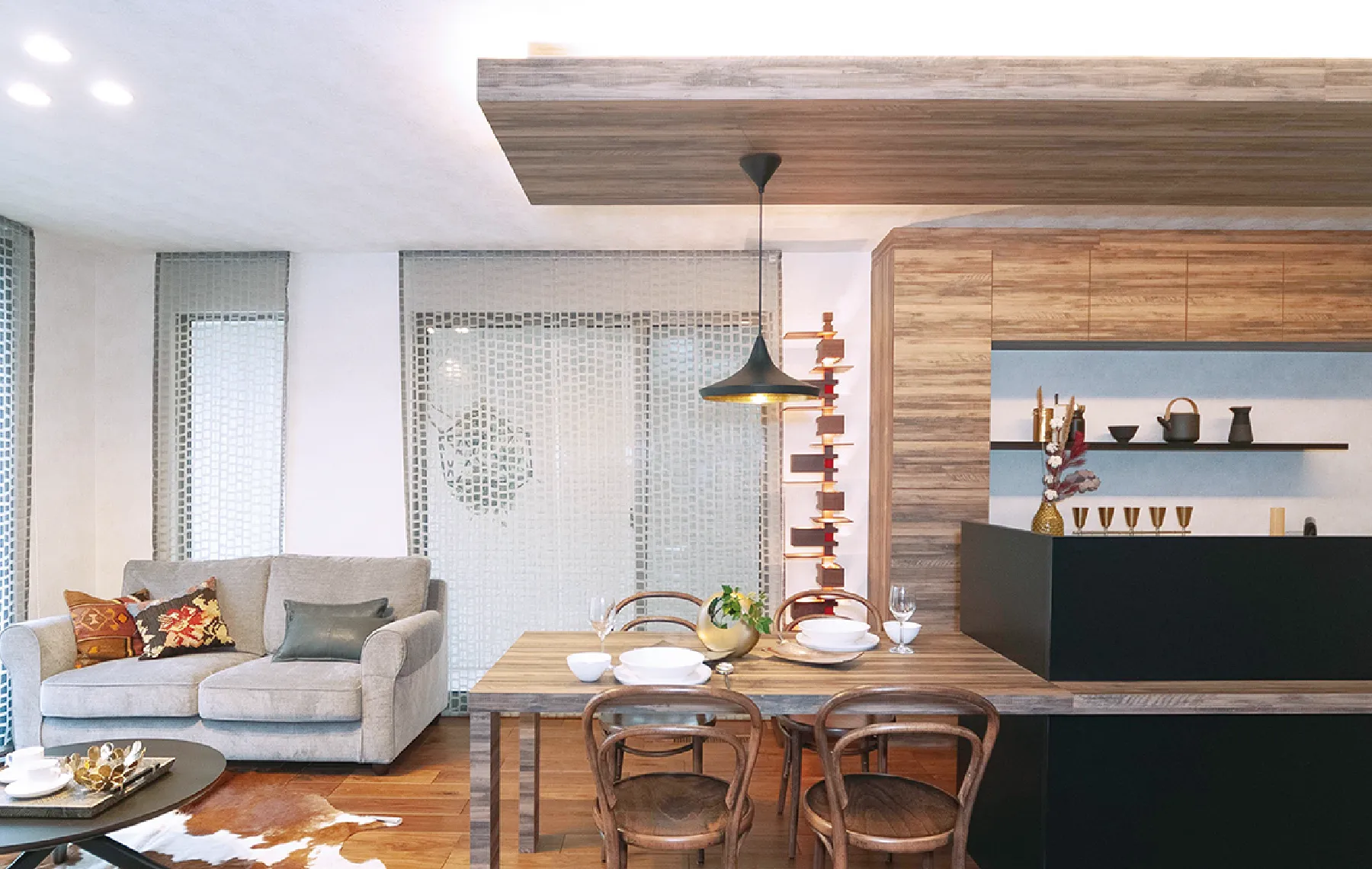 北欧の質感と日本の情緒が融和し、あたたかな空間を生むインテリアスタイル。