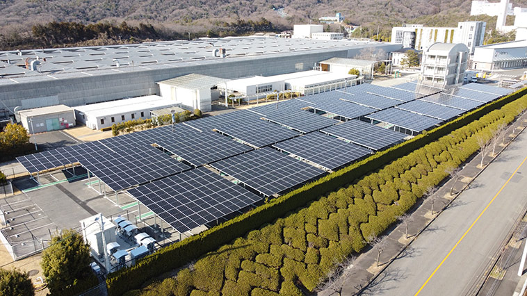 2024年度は2023年度に比べて、CO2排出量が22%減少し、生産床面積当りの原単位も19%減少しました。主なCO2排出量低減対策としては、LPGから都市ガスへの燃料転換(山梨事業所)、CO2フリー電気の採用(栃木事業所)、設備の運転条件見直し(春日井・栃木・山梨事業所)などを実施しました。また、春日井事業所(2025年3月~)、山梨事業(2024年3月~)において、発電事業者が当社敷地内に太陽光発電設備を設置し発電された電気を購入するオンサイトPPAを導入しています。