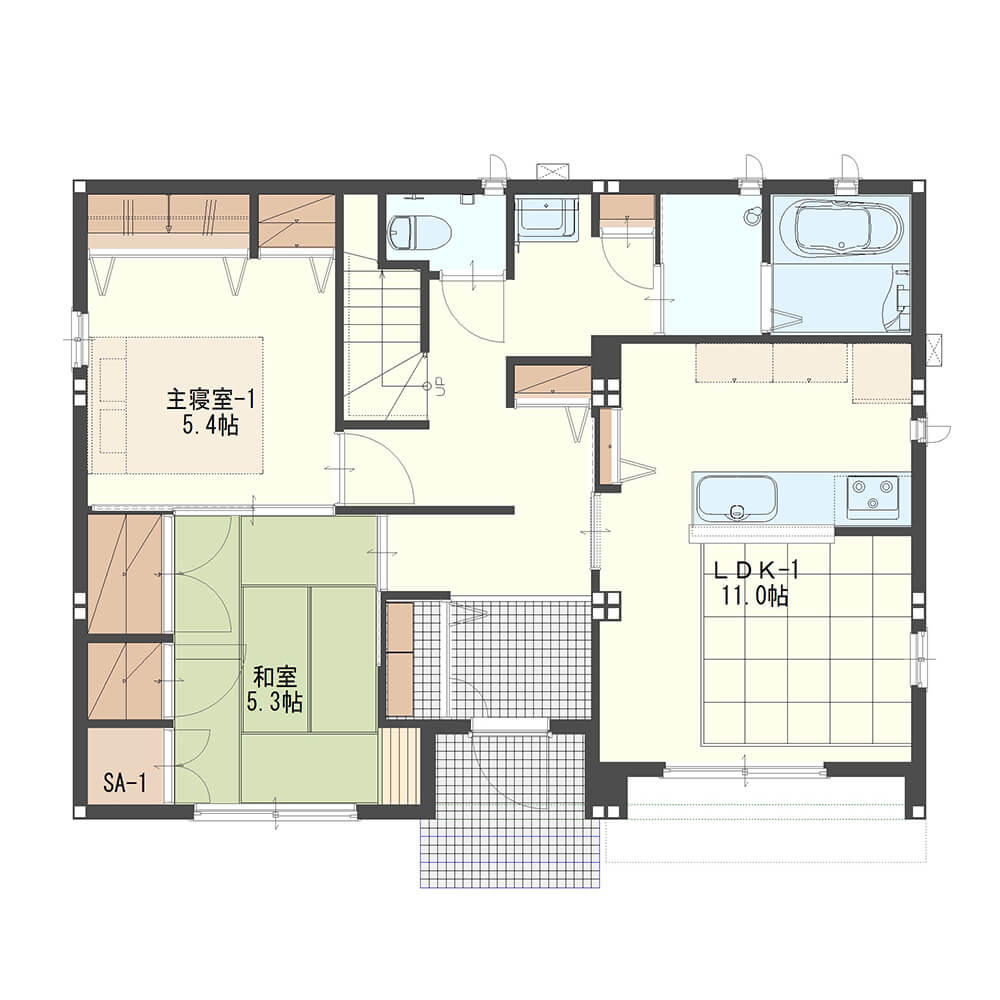 完全分離タイプは、各世帯の居住空間をしっかり分けた間取りです。縦割りの「上下分離タイプ」と横割りの「左右分離タイプ」の2種類があり、どちらのタイプも空間を共用しないので、自分たちの好きなように間取りを決定できます。