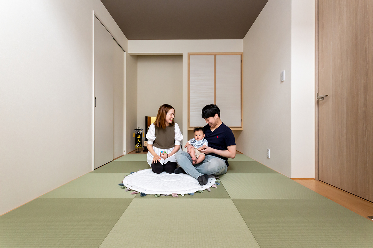 完全な個室にせず、視線や動線がつながる設計であり「家族でくつろぐ畳敷きの空間」としての役割が強まります。日常的に畳の感触を楽しみたいファミリーにおすすめの和室タイプです。