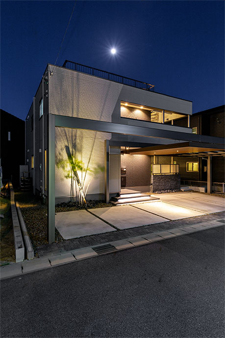 その敷地、建物としっかり調和したエクステリアも合わせて計画し、内部外部、敷地全体を考えたデザインを心がけています。