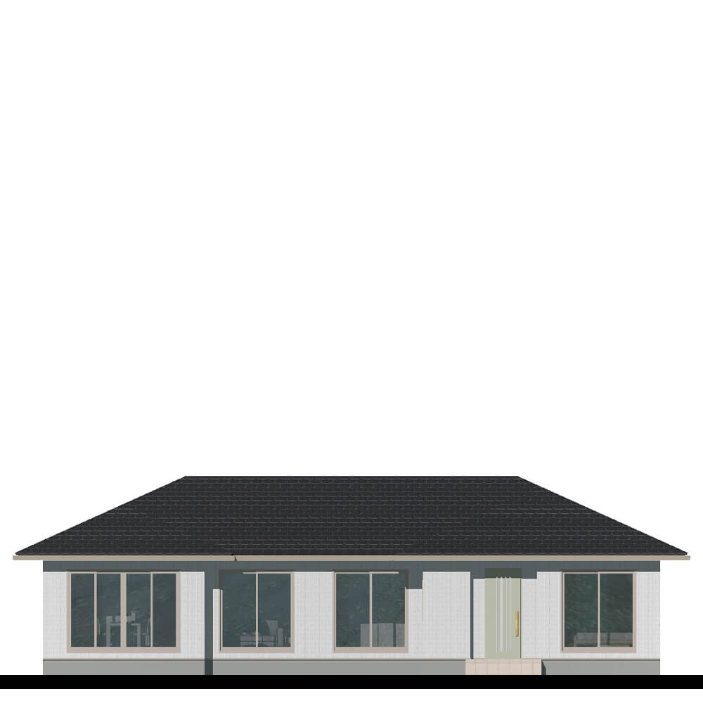吹抜リビングで空間が開放的に、コンパクト動線の快適な平屋