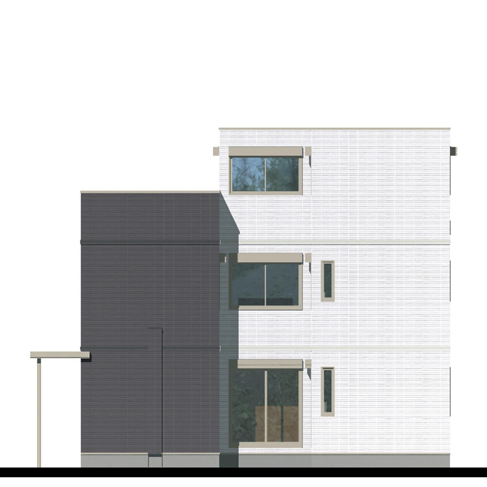 内にひらけた窓が空間と家族をつなげるインナーガレージのある家