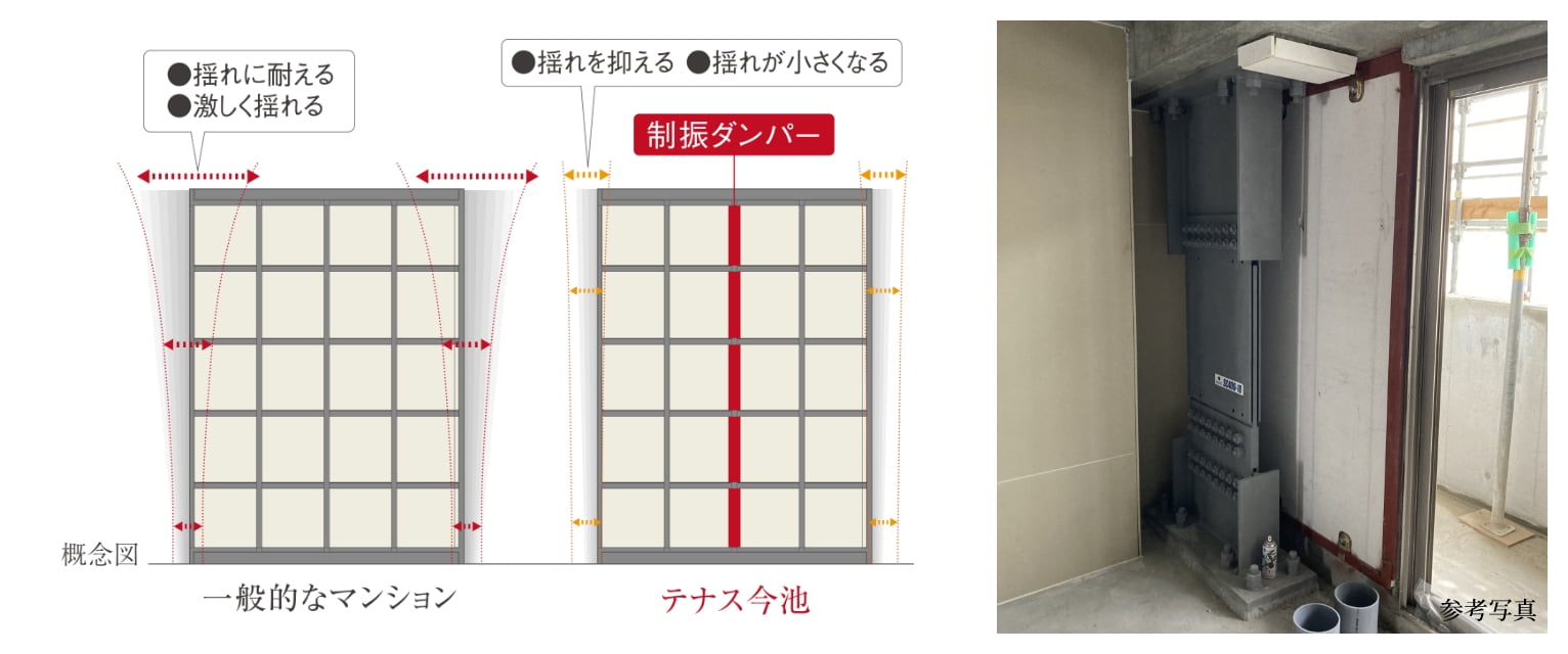 - 制振ダンパーによる制振構造を採用
