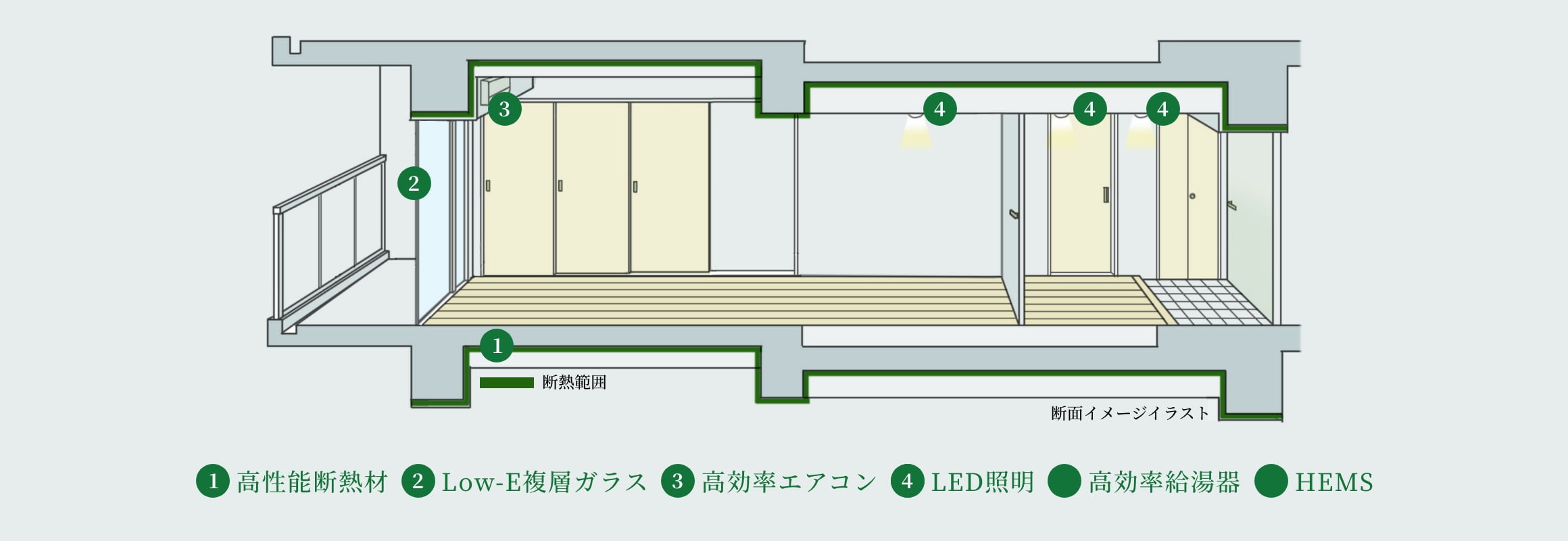 - ※本表示は「住棟全体」の評価であり、「各住戸」の性能を担保するものではありません。