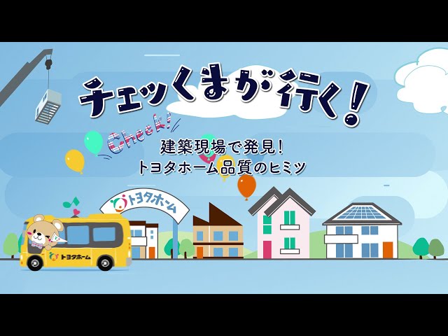 トヨタホームの据付現場見学トヨタホームのキャラクター『チェッくま』が、建築現場を見学!1日で家が建つ貴重な映像をご覧ください!