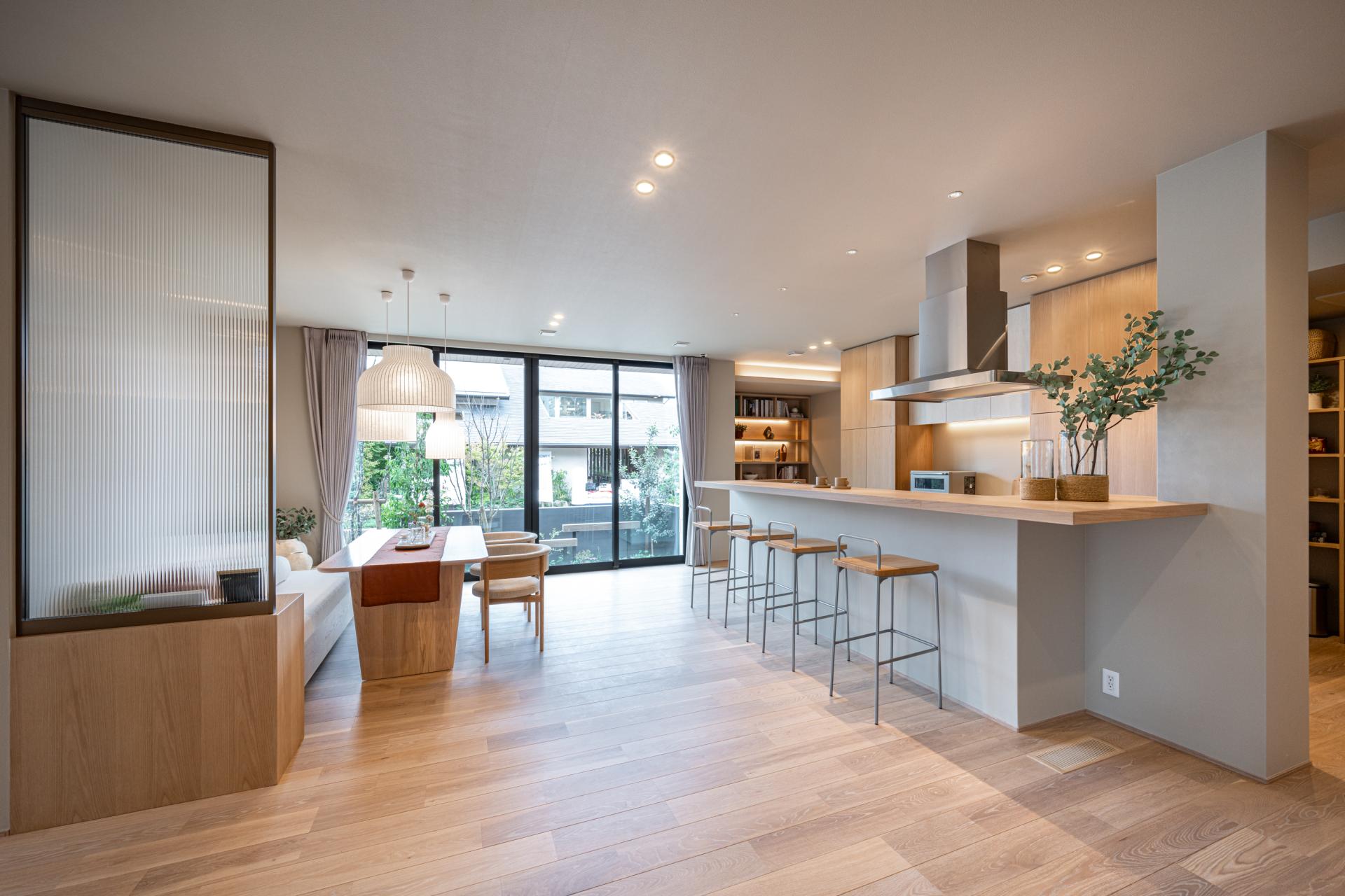 柔らかな光に包まれる、心地よい大空間リビング