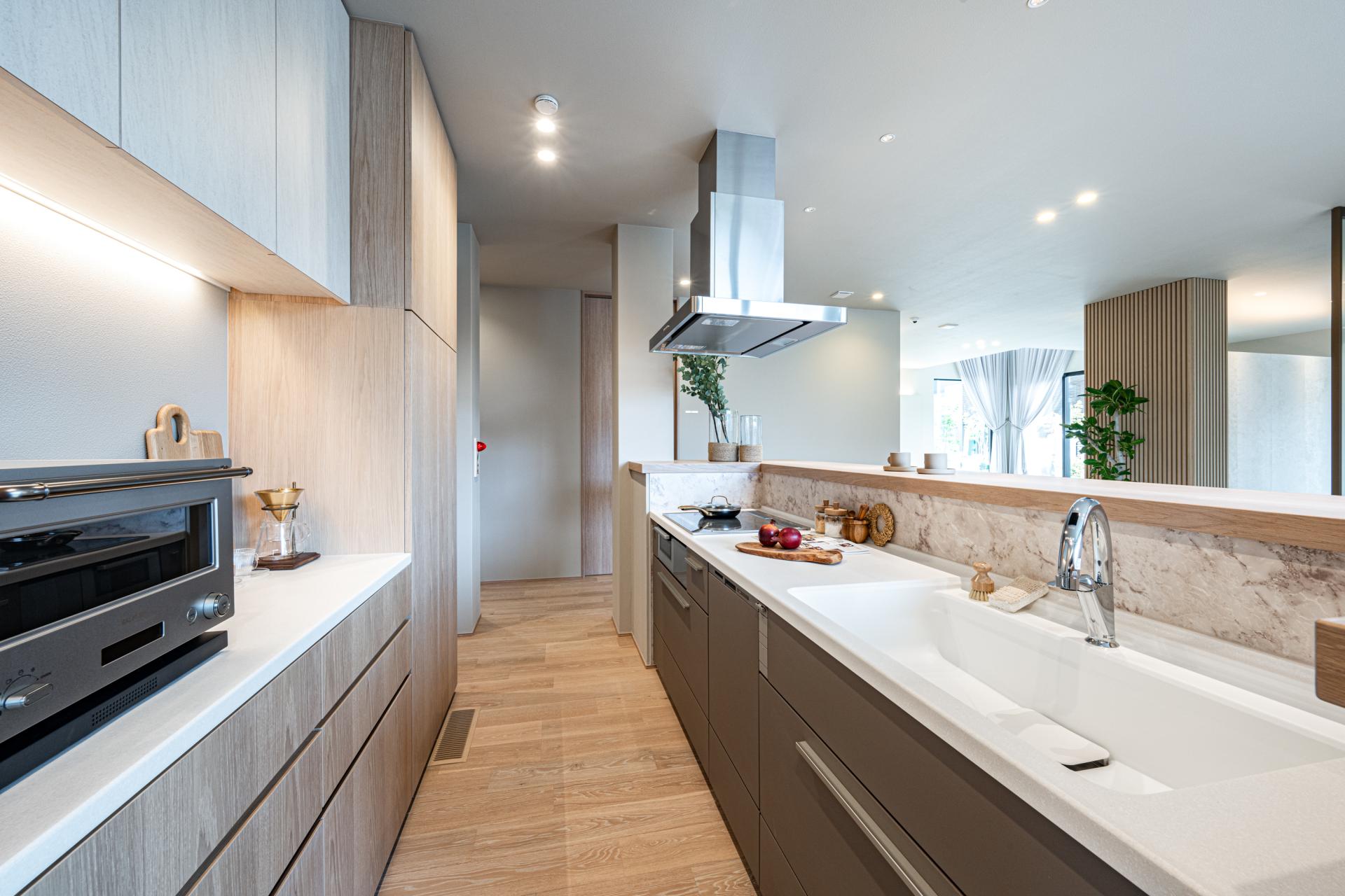 両側アクセスで使いやすいキッチン