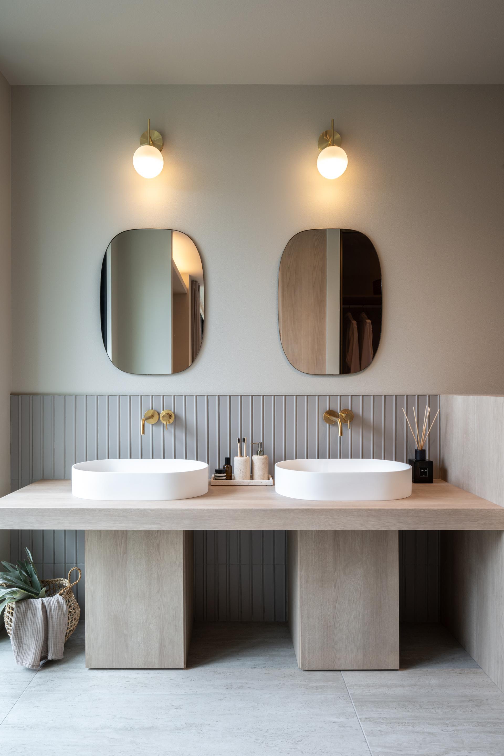ウッド×ゴールドが映えるホテルライクな洗面室