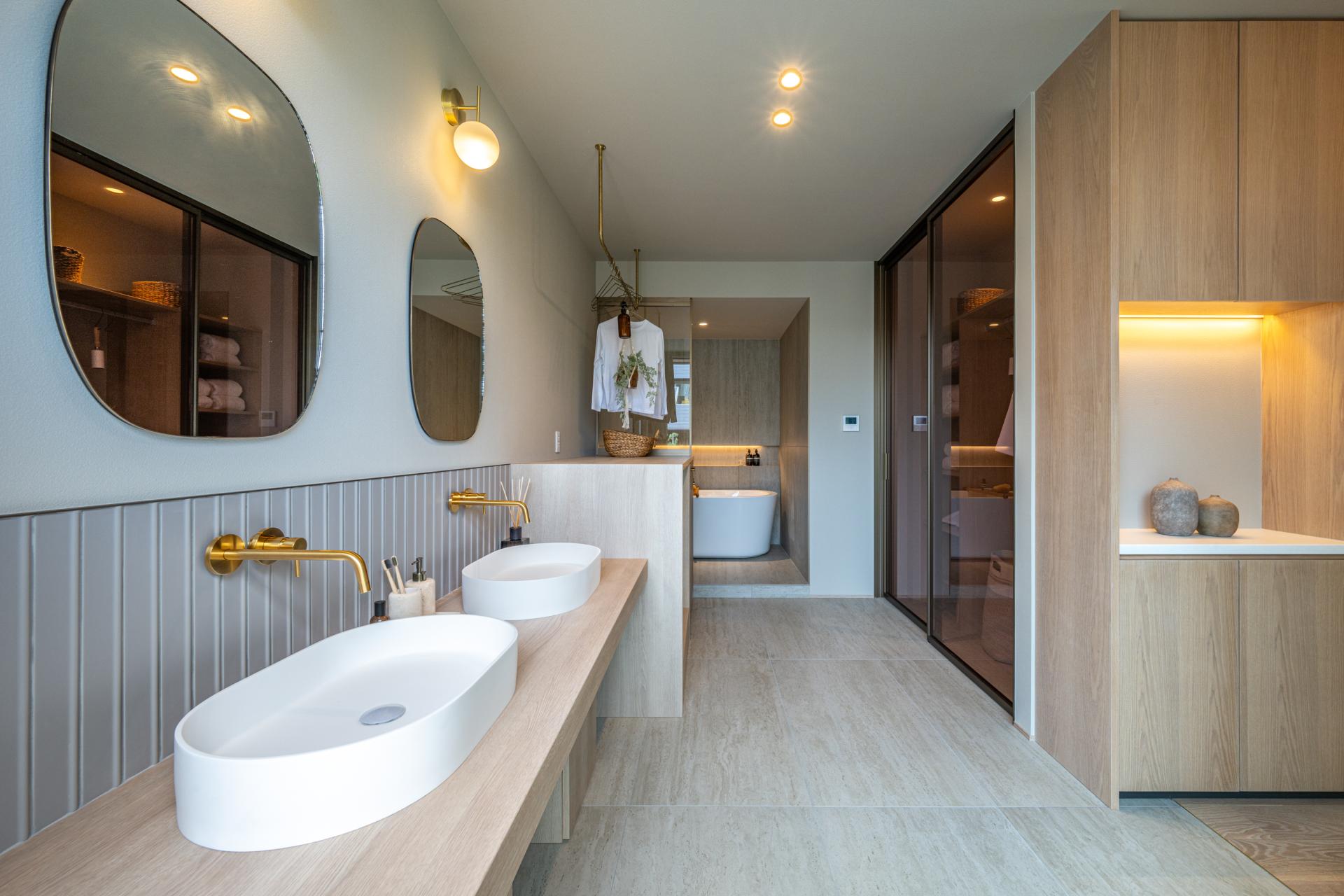 ウッド×ゴールドが映えるホテルライクな洗面室