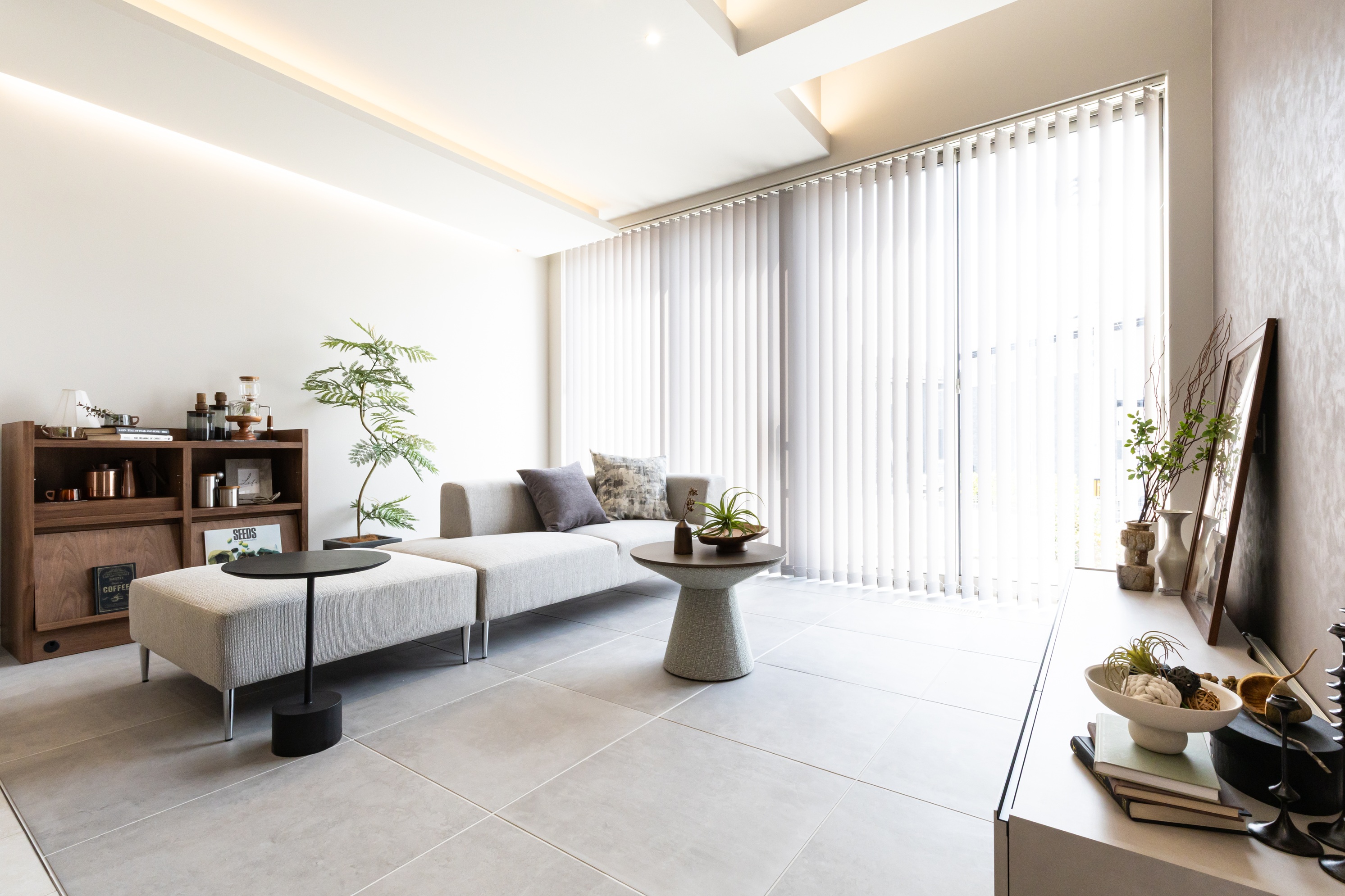 ・ワイドサッシ&ハイサッシと吹抜けのある開放的なリビング