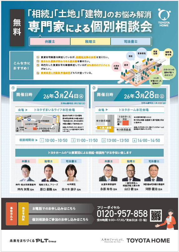 (会場:トヨタホーム本社) ※申込締切日:3月25日(水)