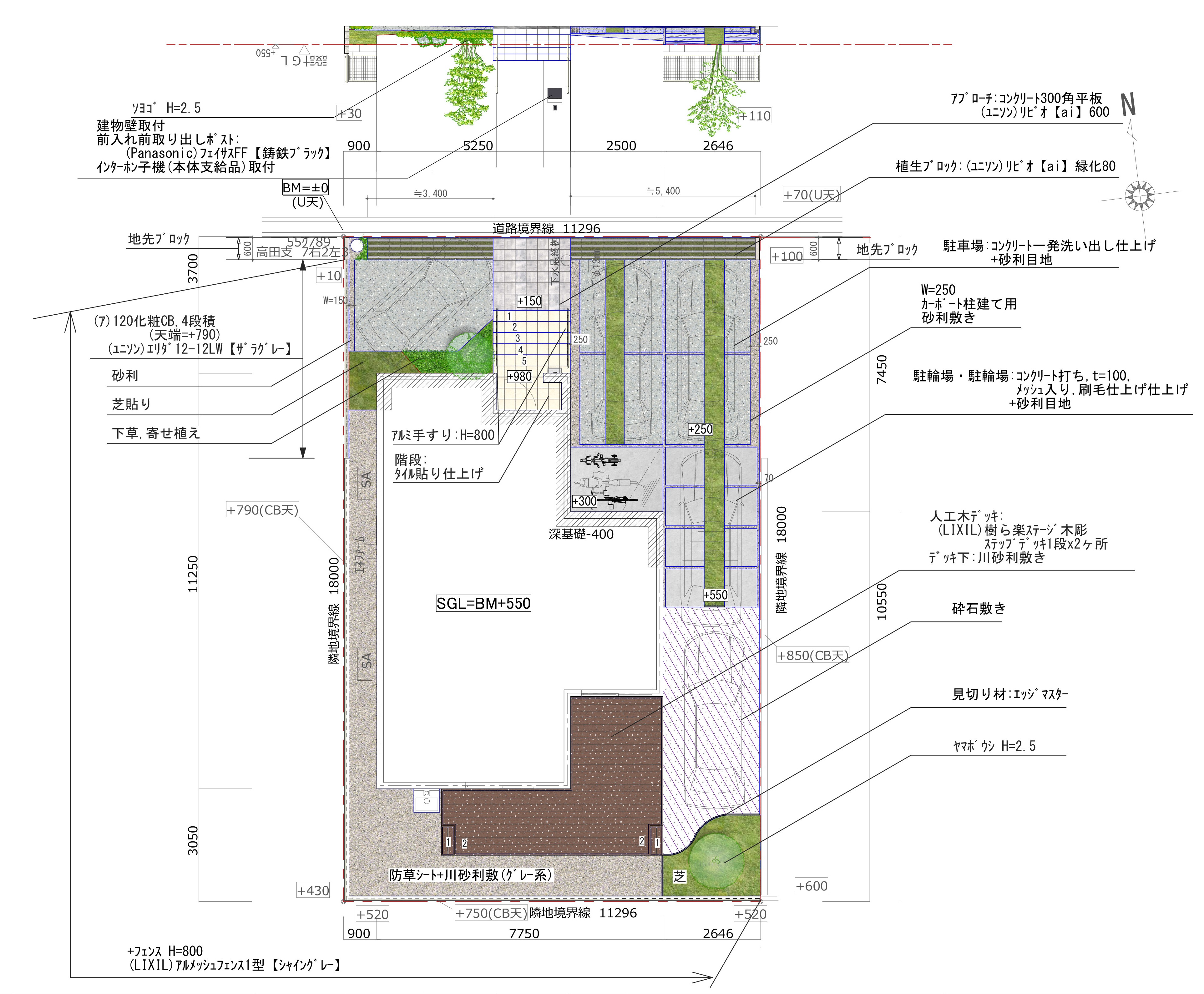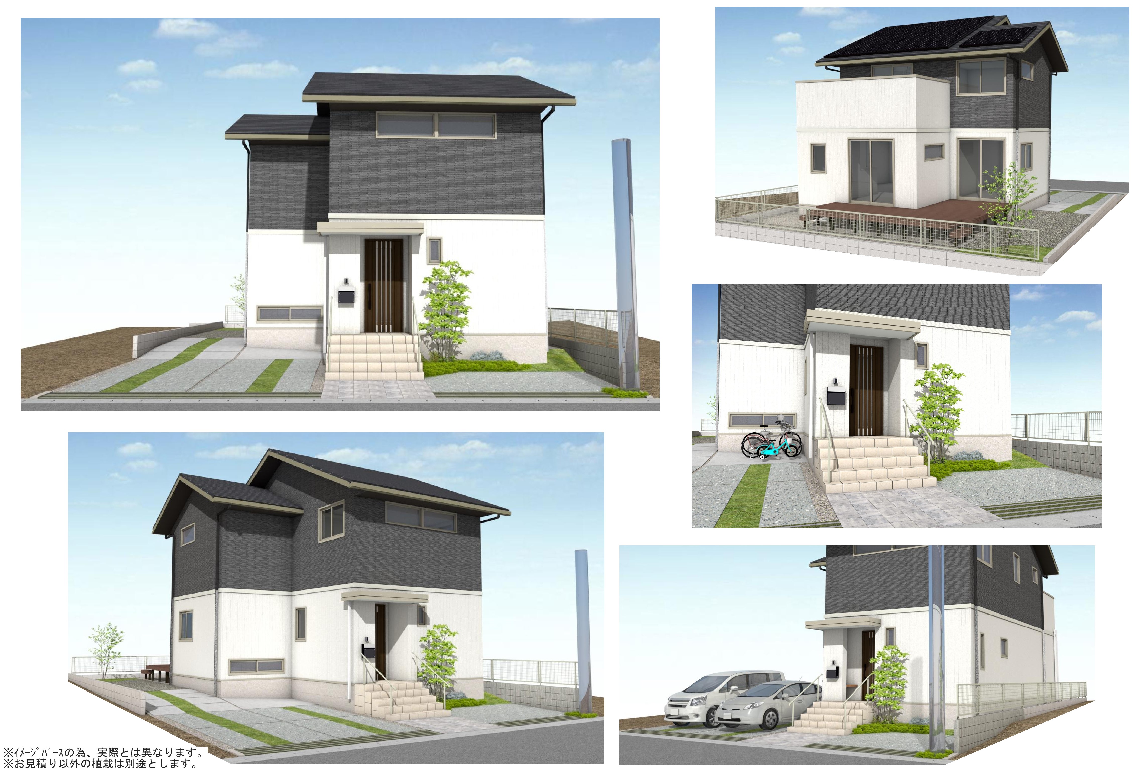 (参考)一般的なら車2台+駐輪場となるところを、今回は車5台+駐輪場で南側の庭にも東側のスロープを通り車の横付けが可能な敷地利用を行っています。