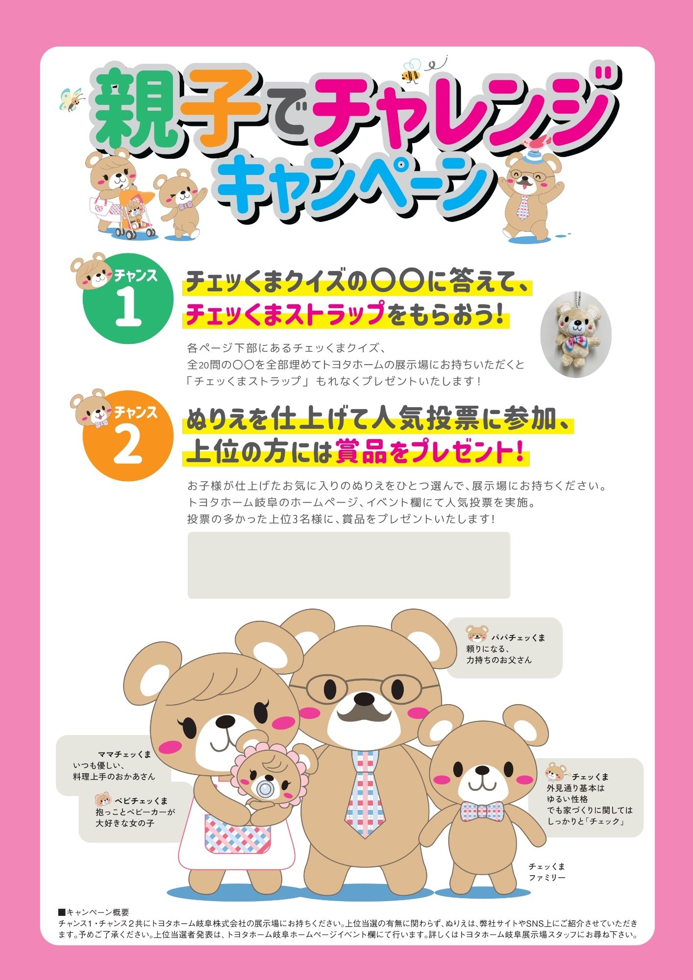 自由帳のクイズとチェッくまぬりえを仕上げて、トヨタホーム岐阜の展示場に行こう!