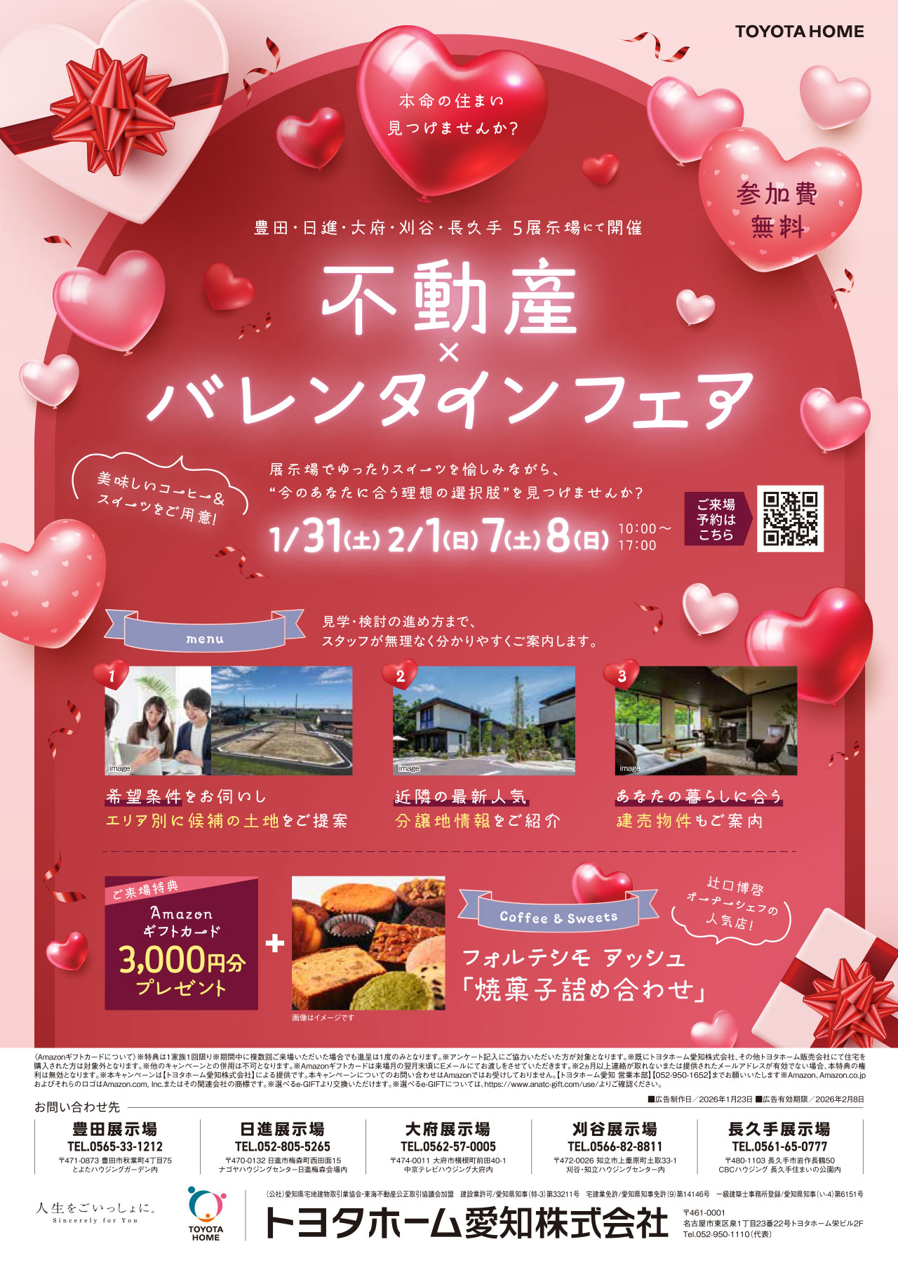 豊田・日進・大府・刈谷・長久手 5展示場にて開催 不動産✕バレンタインフェア 展示場