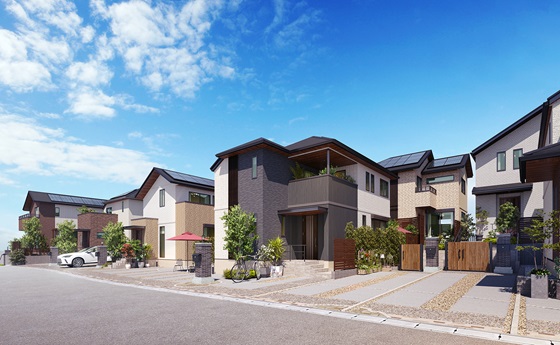 遊歩道「四季の道」が巡る、美しく計画的に整備されたおゆみ野の街。その中の夏の道へと続く遊歩道沿いに、トヨタホーム「きづきの森」以来7年ぶりの街づくり邸宅分譲が誕生。