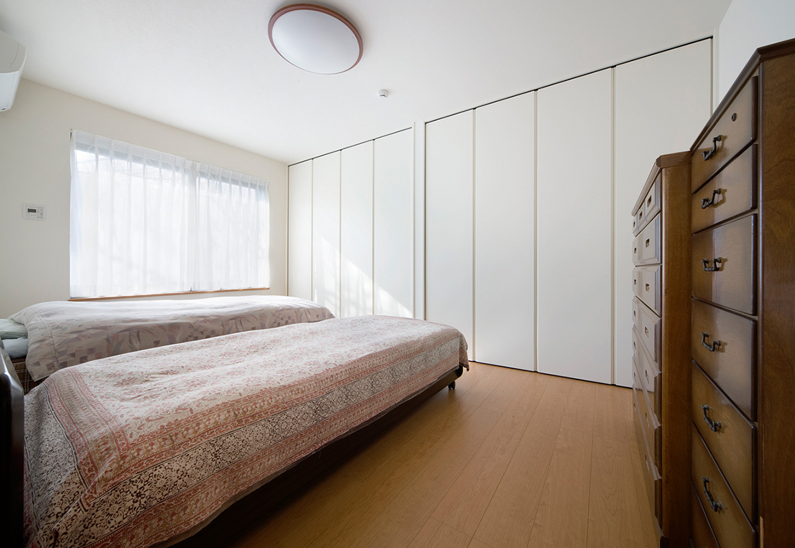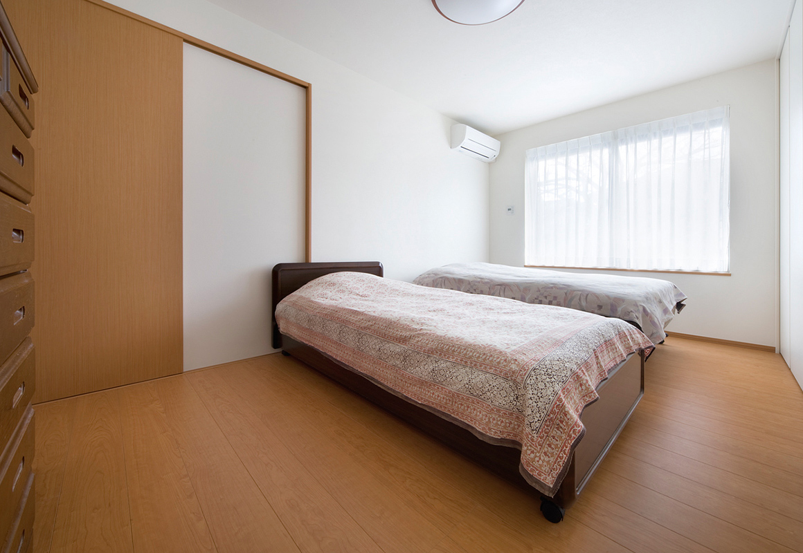 「他の部屋からすぐに行き来できるように」との考えから、リビングの隣に和室を配置。普段はふすまを開けて、リビングと一体のスペースとして使っています。息子さんご一家が帰省した際などは、この和室が宿泊スペースに。趣味の時間や来客時などさまざまな場面に使える、便利なひと部屋です。