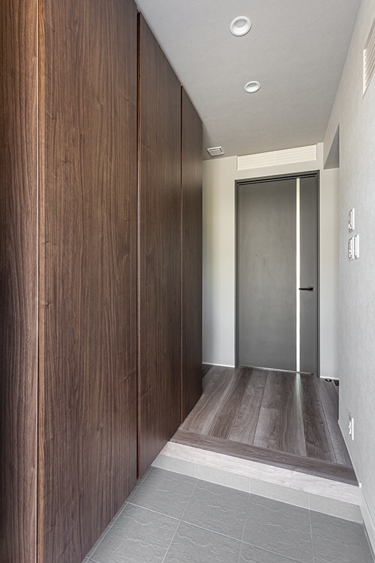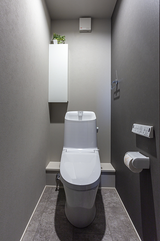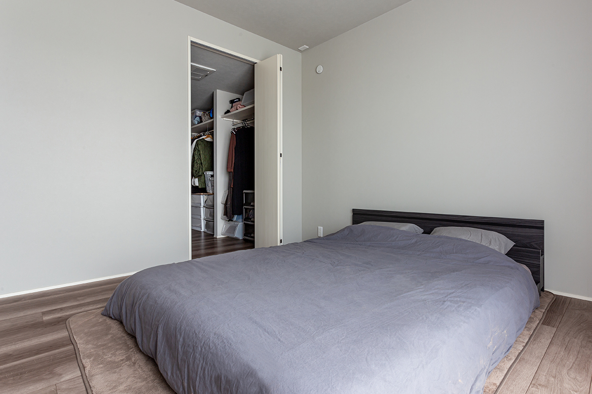 リビング収納や、玄関には天井まで高さのあるシューズクローゼット、主寝室には3畳を超えるウォークインクローゼットを設置。また、キッチンやトイレのスペースを有効活用した収納も、日常にうれしい便利さです。用途に合わせて充分な収納があることで、欲しい時に欲しいものが手に取れて生活がしやすいのはもちろん、普段からすっきり片付いている状態を維持できるので、来客が多いT様も安心です。