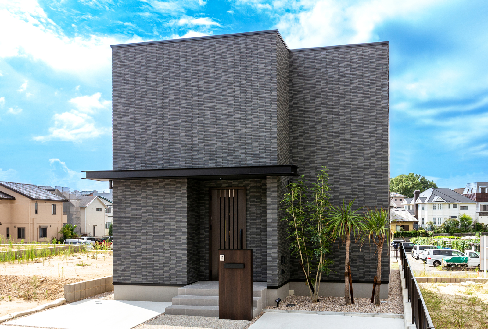タイル外壁が引き立つシンプルモダンな外観