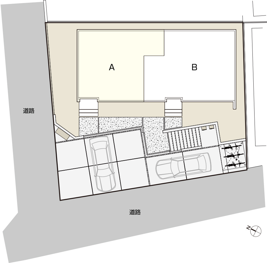 長年空き地だった土地に3LDK×2戸のファミリー向け賃貸を建築。メゾネットタイプの間取りを採用し、80㎡超のゆとりある住空間を実現したほか、敷地内のレイアウトを工夫し、各戸2台分の駐車スペースとサイクルポートを確保。高台の角地のため日当たりもよく、魅力あふれる物件になりました。