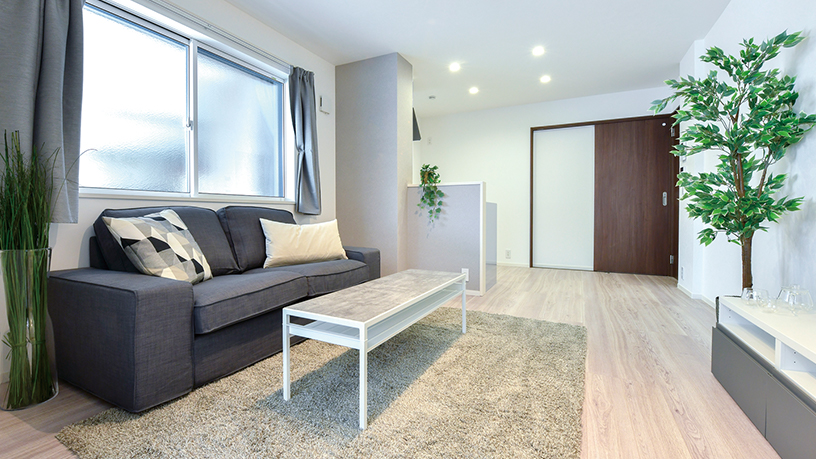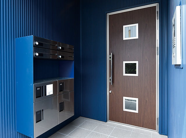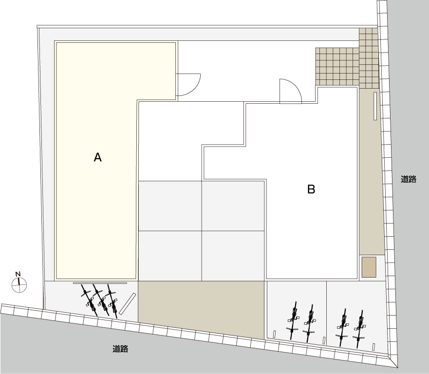 代々受け継がれている大切な土地に、オーナー様のご自宅と1LDK4戸の賃貸を確保した併用住宅。前面の道路が広い南向きの立地を活かしながら、オーナー様と入居者の導線を分け、敷地内には駐輪スペースも設置しました。