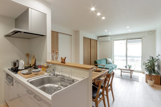 区画整理地の街並みに調和する、戸建風の佇まいが魅力の2階建の賃貸です。クローズ外構で安心感のあるセキュリティを実現し、各世帯のプライバシーにも配慮。新婚世帯をターゲットに2LDK全2戸を確保しました。